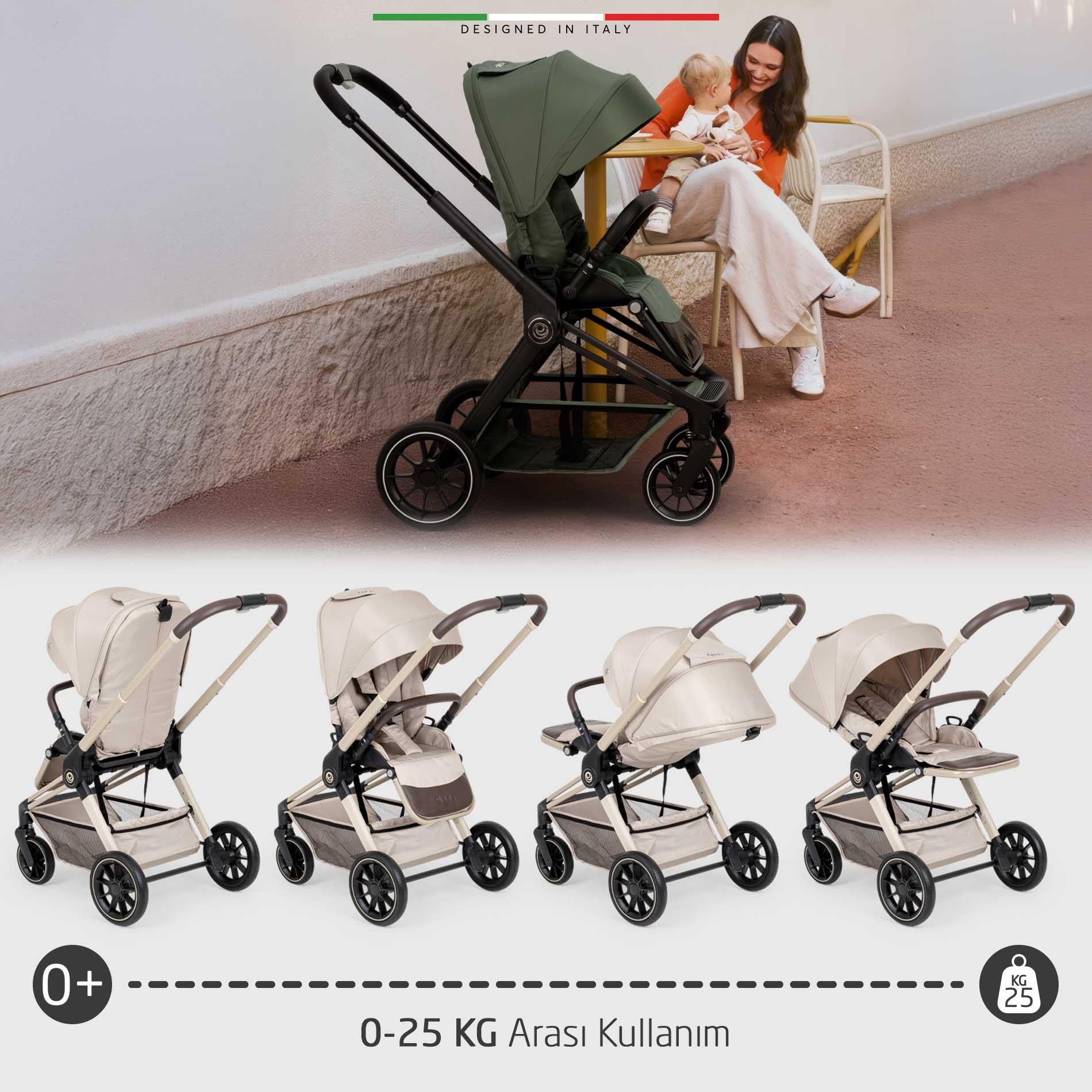 Fertile Çift Yönlü Bebek Arabası, bebeğinizin doğumdan itibaren tüm ihtiyaçlarını karşılar: