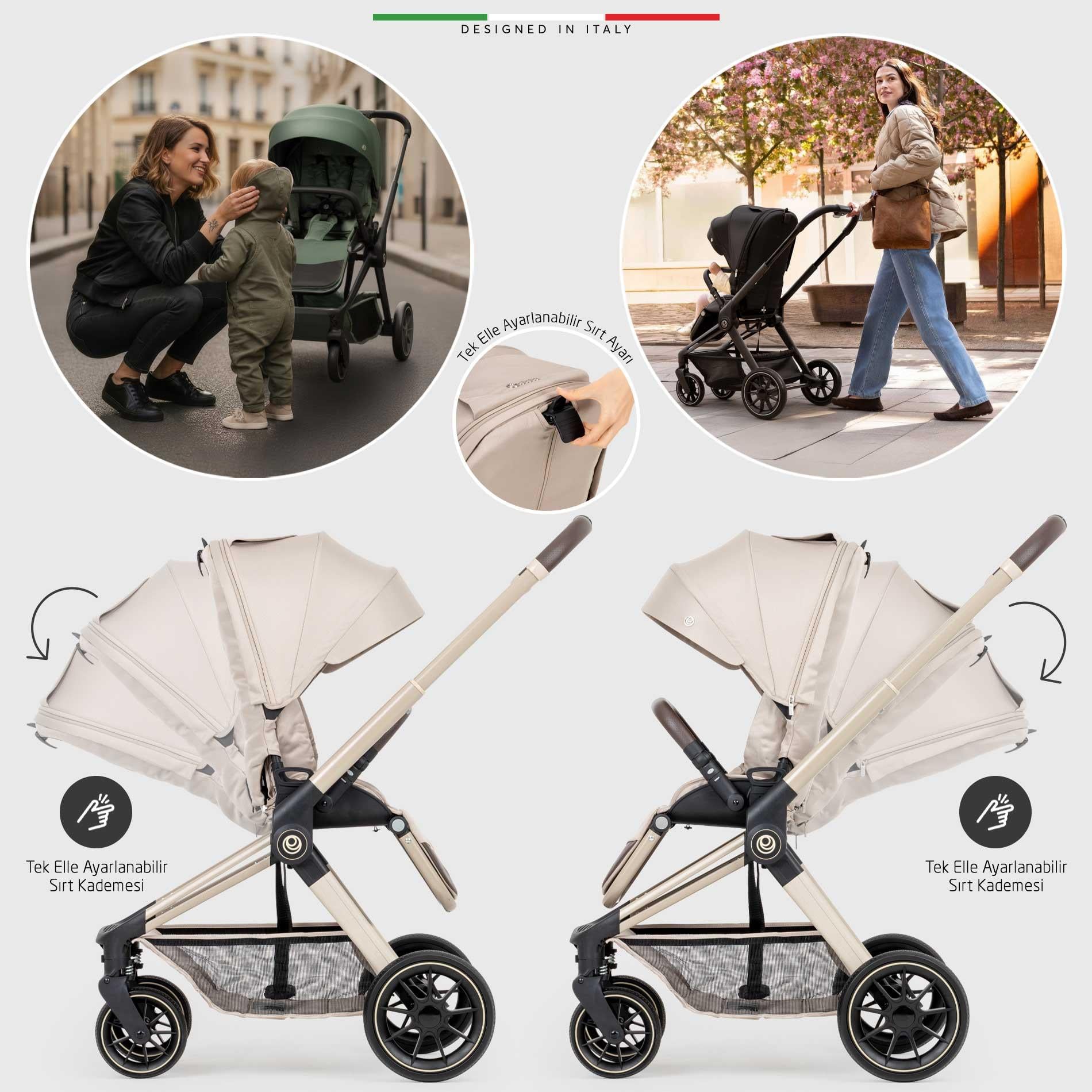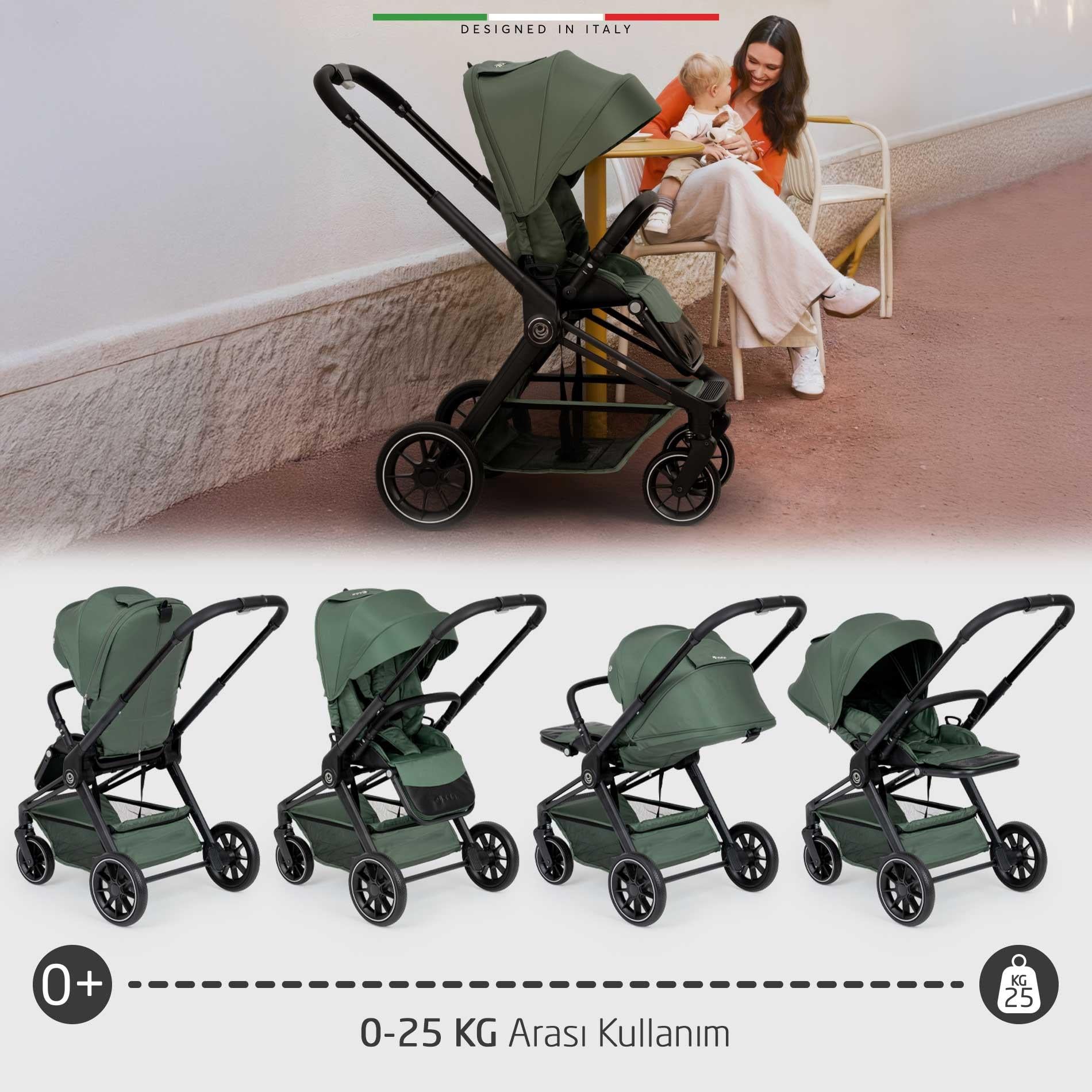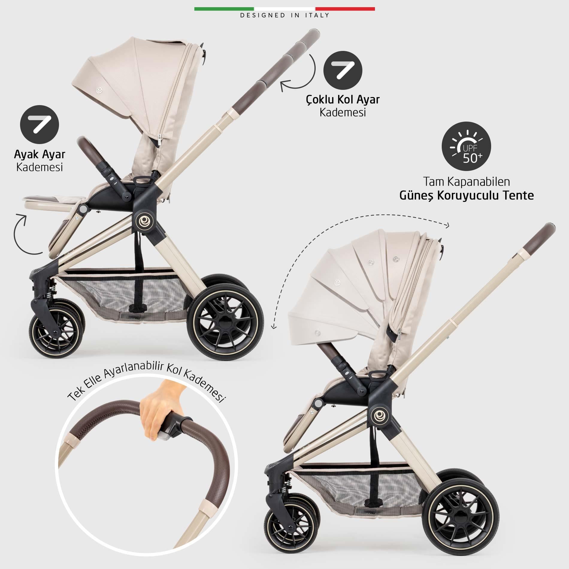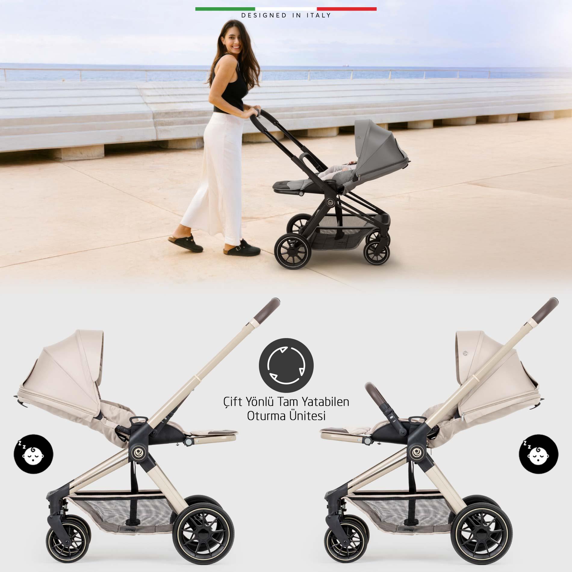 Fertile Çift Yönlü Bebek Arabası, bebeğinizin doğumdan itibaren tüm ihtiyaçlarını karşılar: