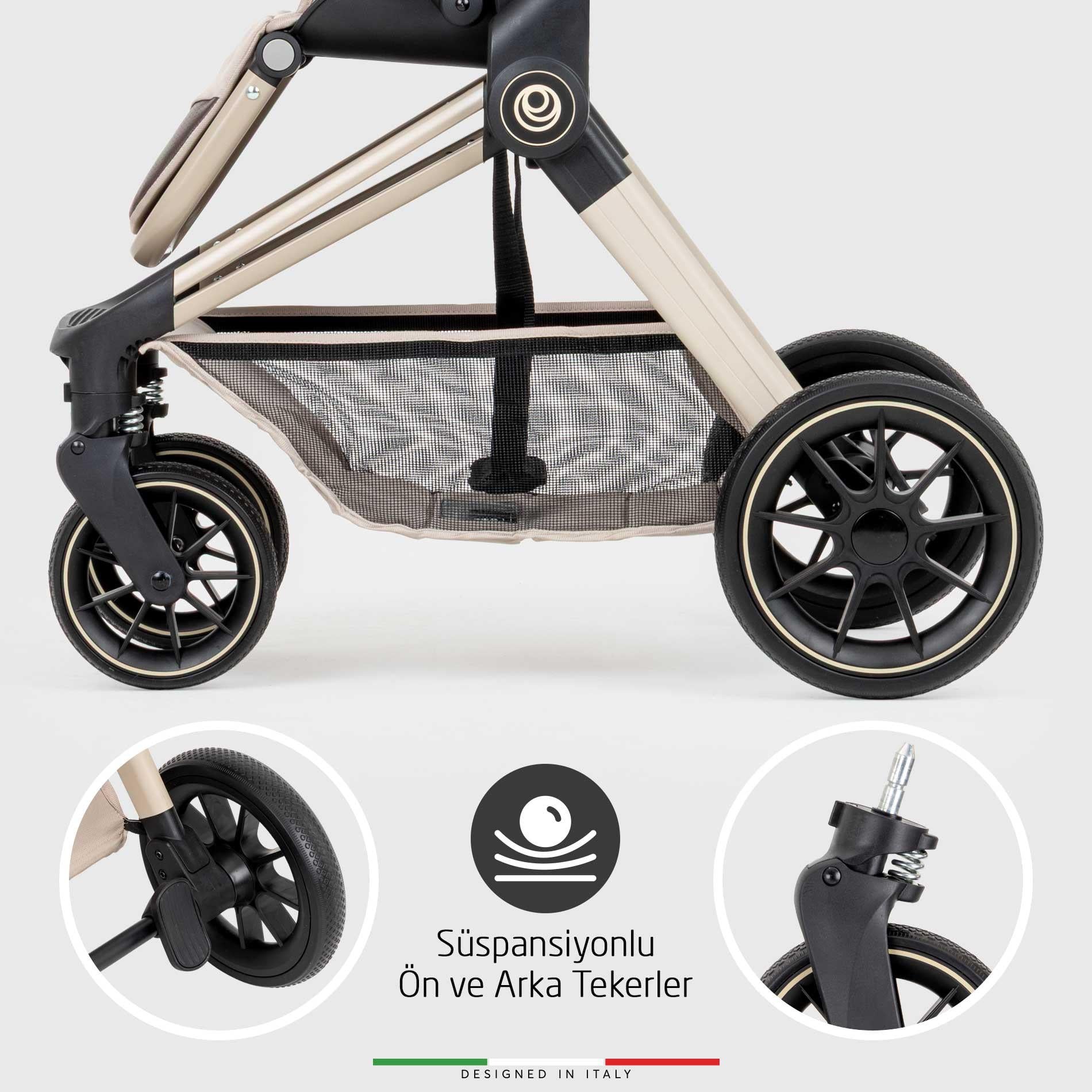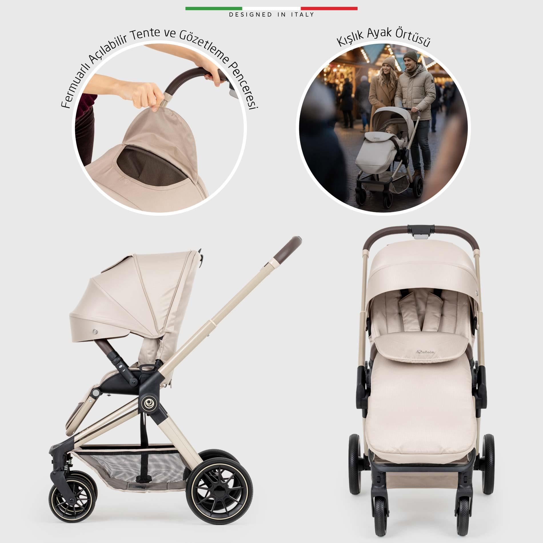 Elele Fertile, zarif İtalyan çizgileriyle tasarlanmış; güvenlik, estetik ve fonksiyonelliği bir araya getiren yeni nesil çift yönlü bebek arabasıdır. Doğumdan itibaren kullanılabilir yapısı, 0-25 kg arası taşıma kapasitesi ile bebeğinizin her dönemine eşlik eder.