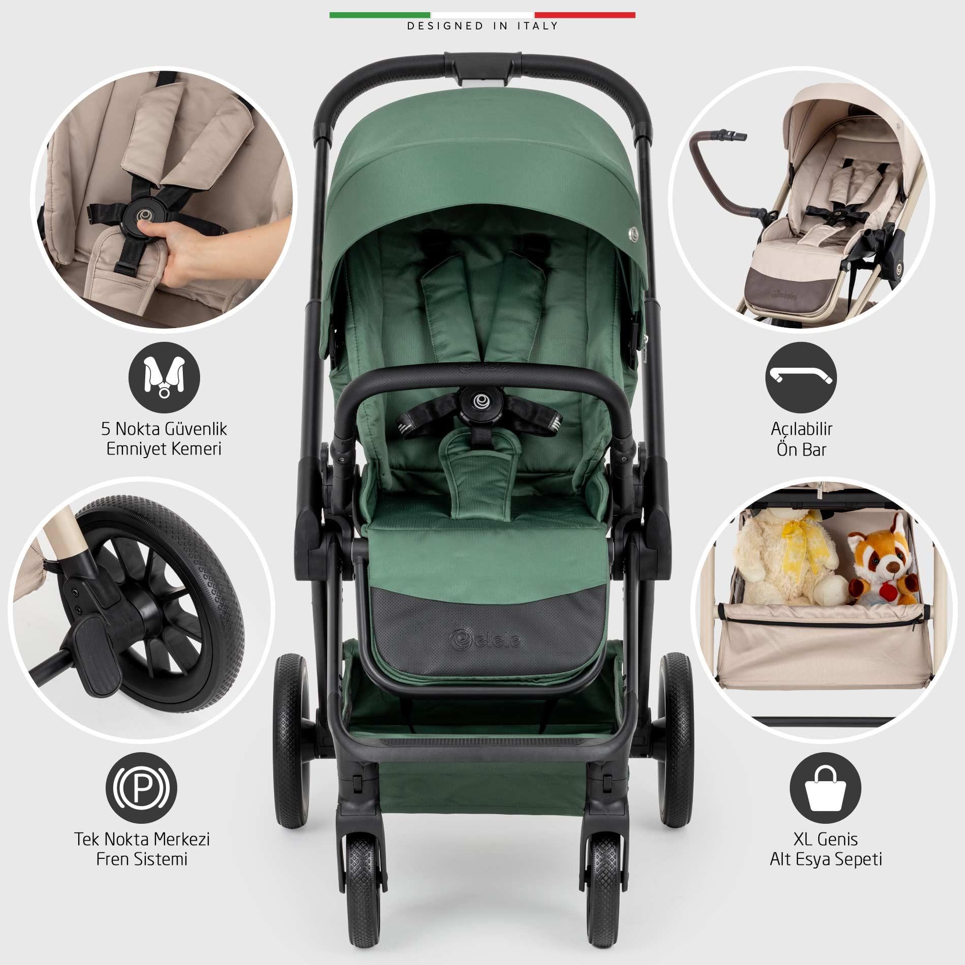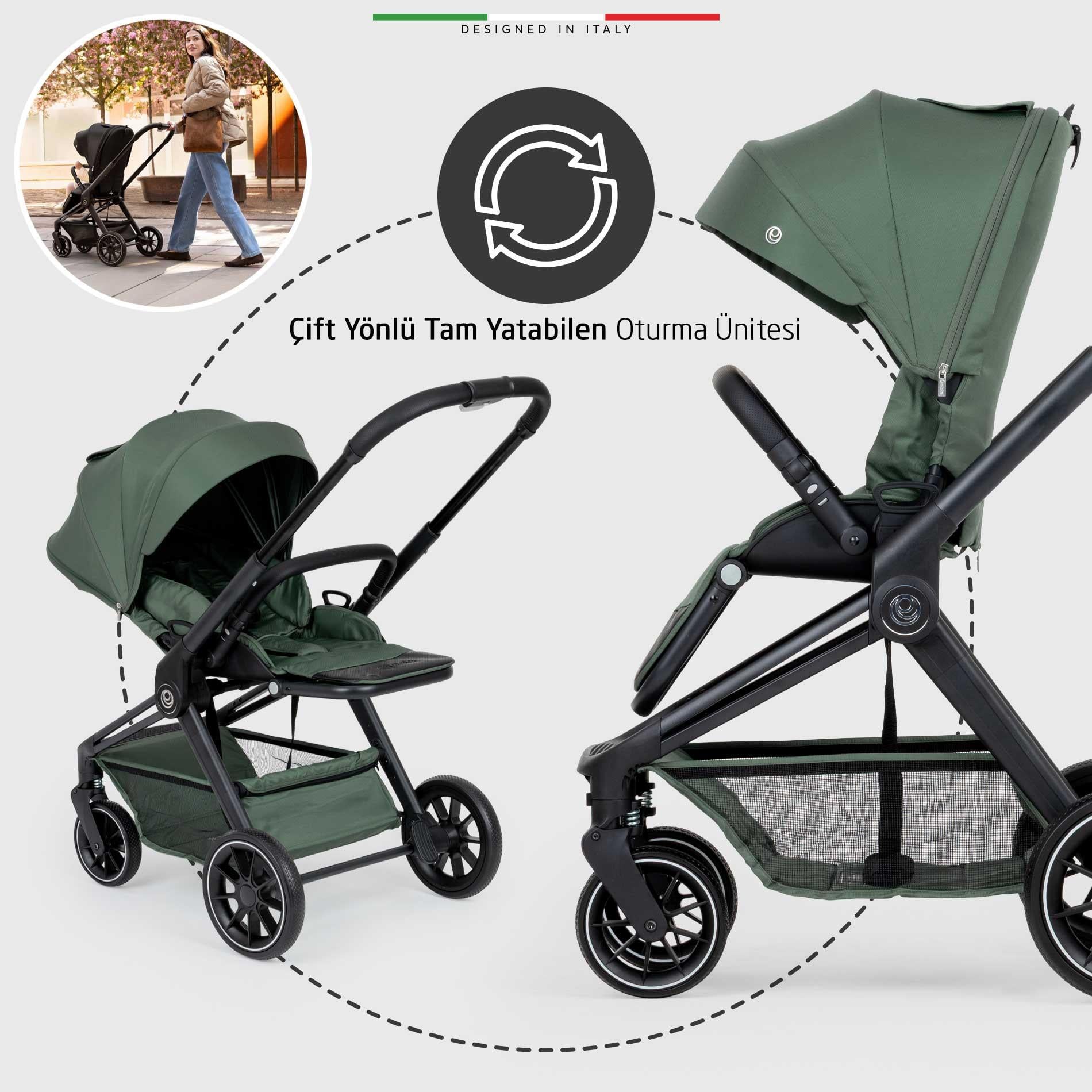 Elele Firenze Çift Yönlü Bebek Arabası Yeşil (ELCFTYONFIRENZE-027)