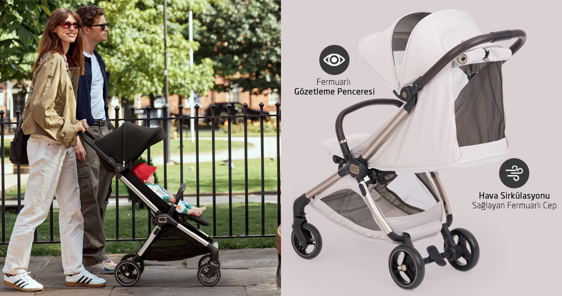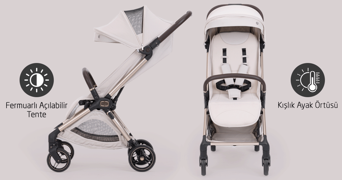 Kapanabilir tente yapısı, ani rüzgâr ve parlayan ışıklara karşı ek koruma sunar. Dış mekânda bile bebeğinizin konforunu korur.