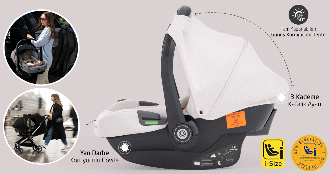 Yeni nesil Avrupa güvenlik standardı i-Size sertifikasına sahiptir. Kaza anında darbeyi emen gövde yapısı sayesinde maksimum koruma sağlar.