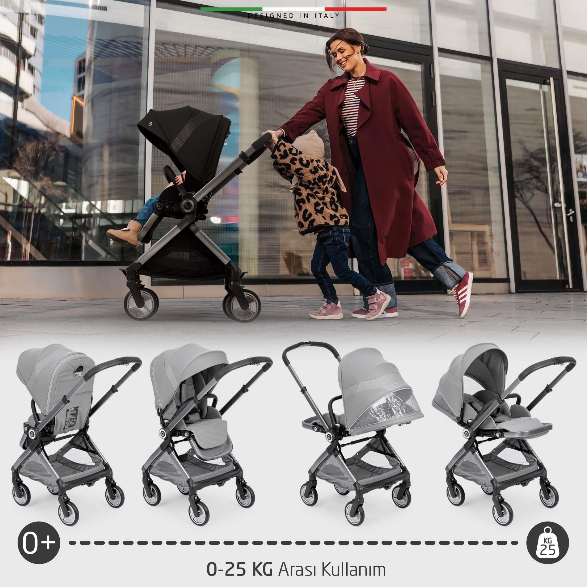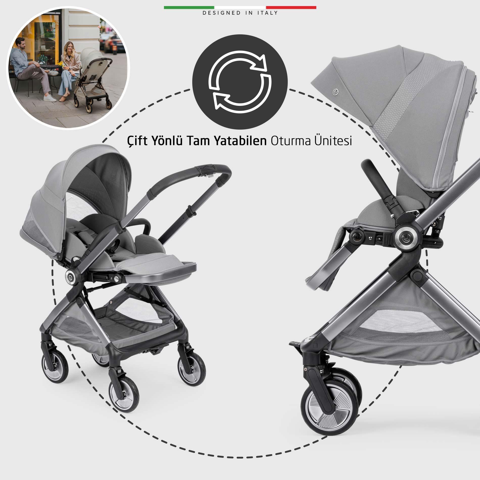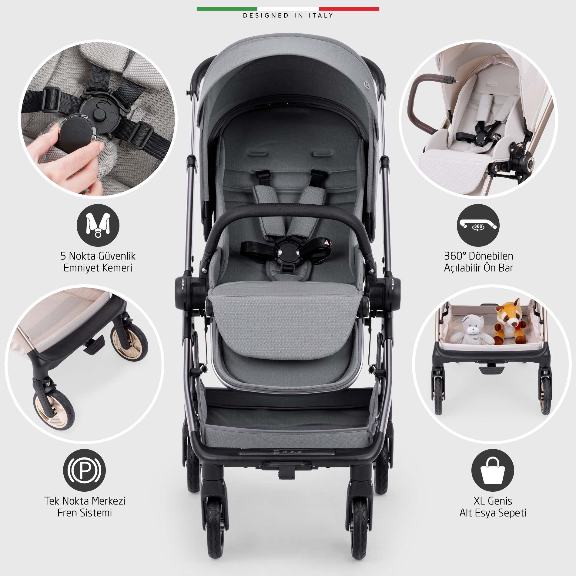 Elele Rotabile Premium Çift Yönlü Bebek Arabası Gri (ELCFTYONROTABILE-030)