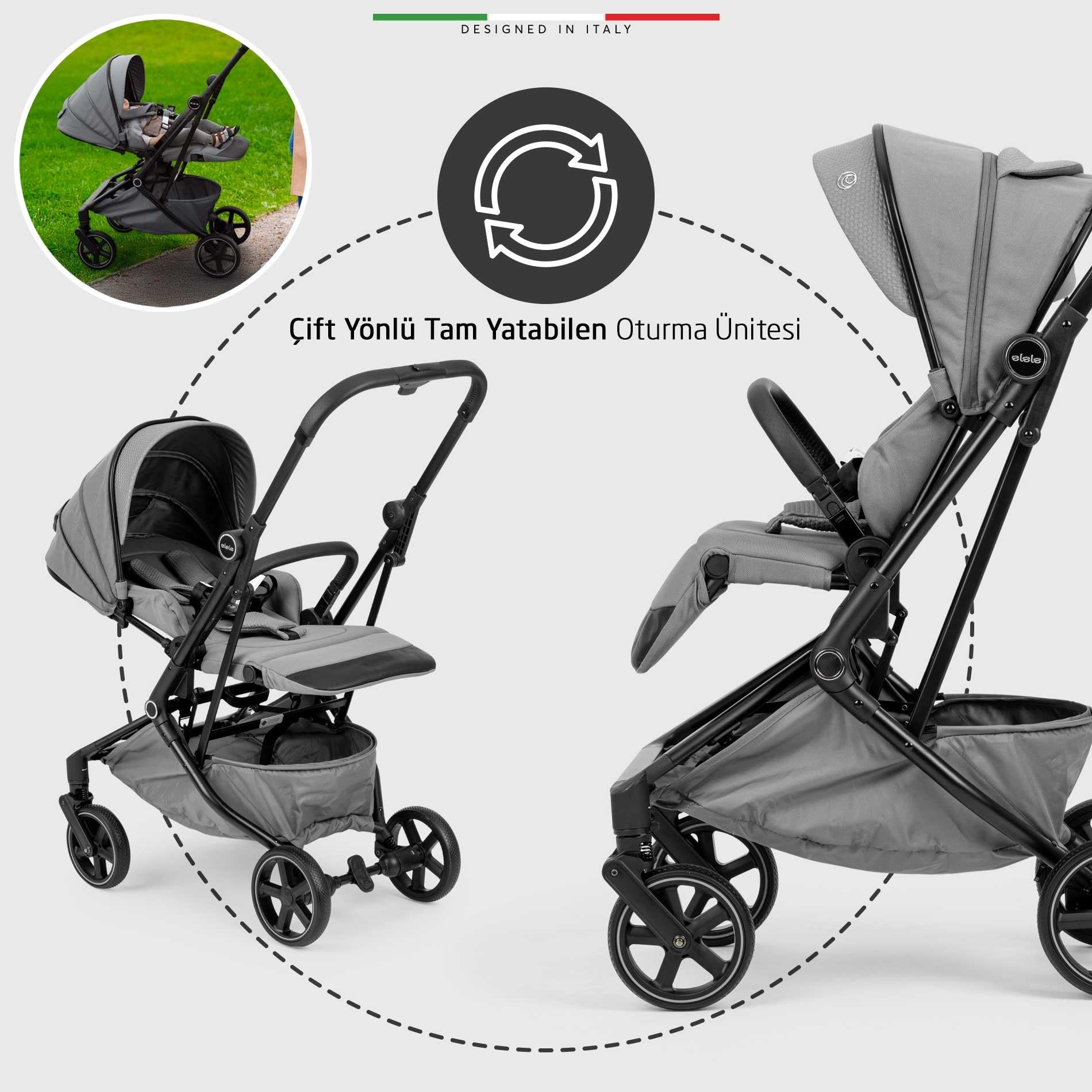 Elele  Rotativo Çift Yönlü Kabin Tipi Bebek Arabası Özellikleri: