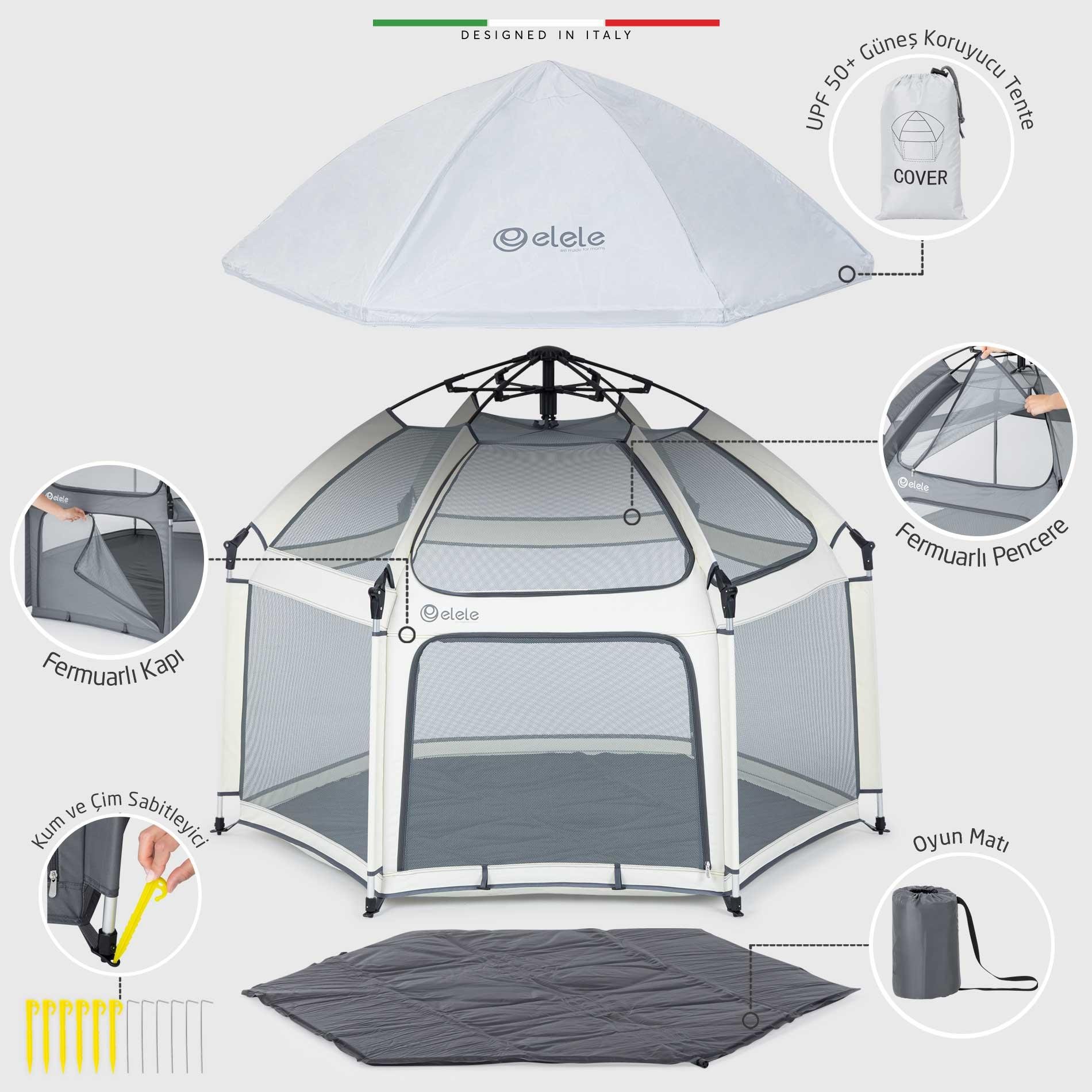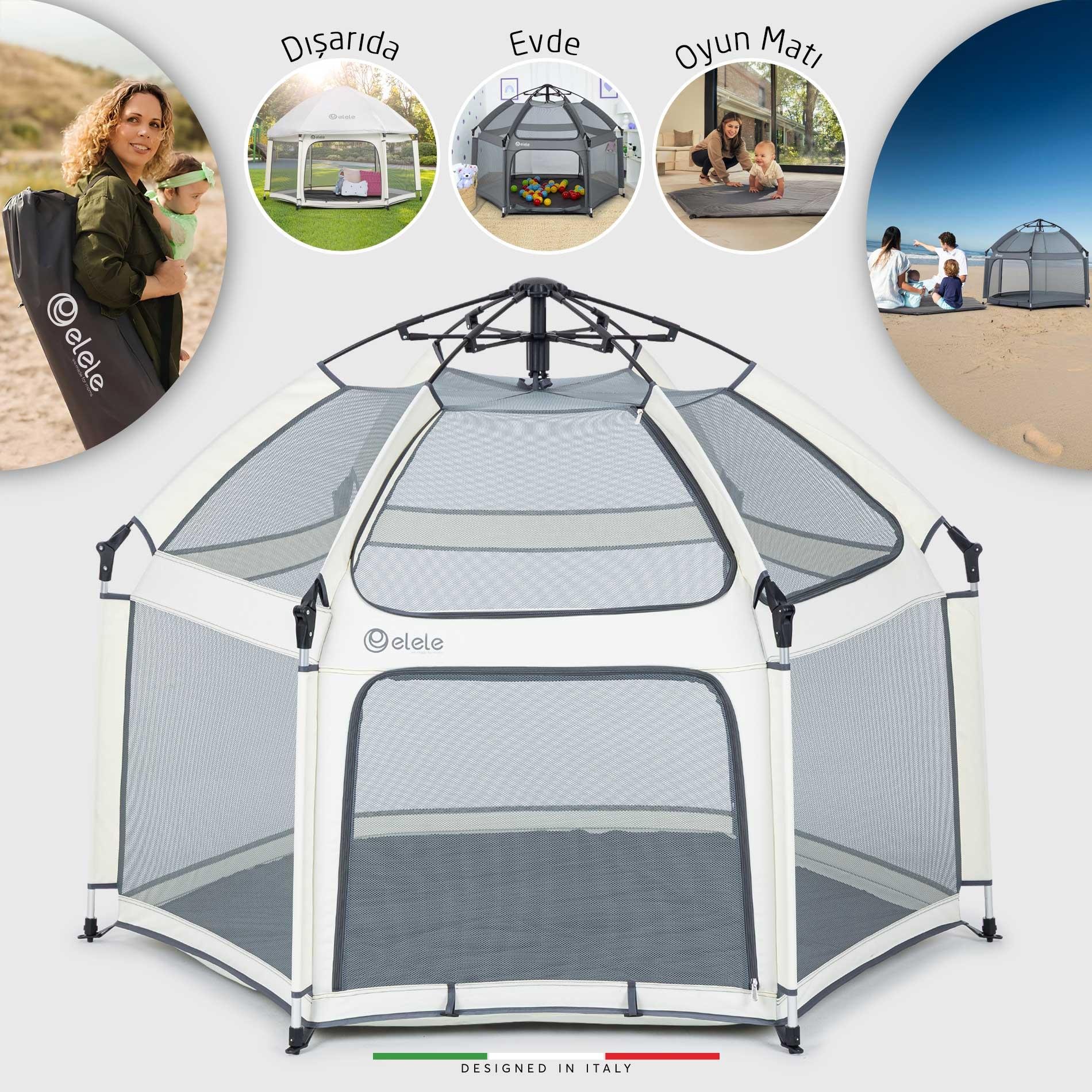 Elele Tenda Bebek Park Yatak Oyun Parkı ve Oyun Çadırı Bej Elele Tenda Bebek Park Yatak Oyun Parkı ve Oyun Çadırı Gri