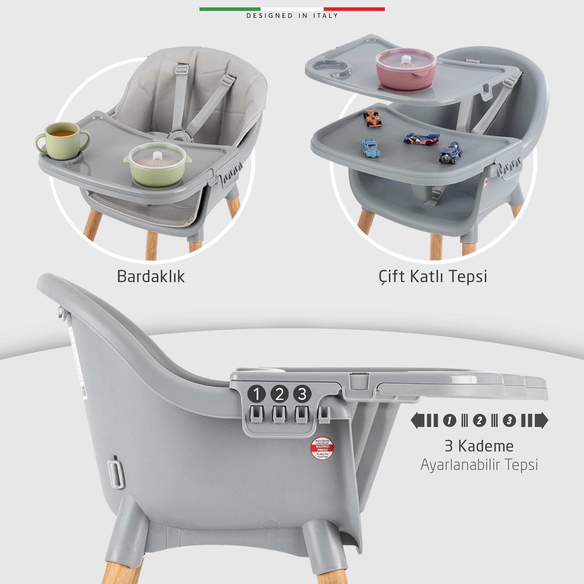 Elele Verona 2 4in1 Ahşap Bebek Mama Sandalyesi ve Mama Oturağı Deri Pedli Özellikleri: